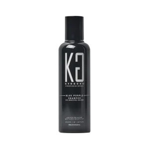 グレーに染めた後は、KYOGOKUブルーパープルのカラーシャンプーを使って色を足すと、アッシュの色味を入れつつ退色によって出てくる黄ばみをしっかり消してくれます。