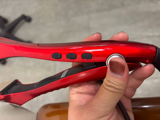 ほとんどのストレートアイロンは、ボタンが外側についています。