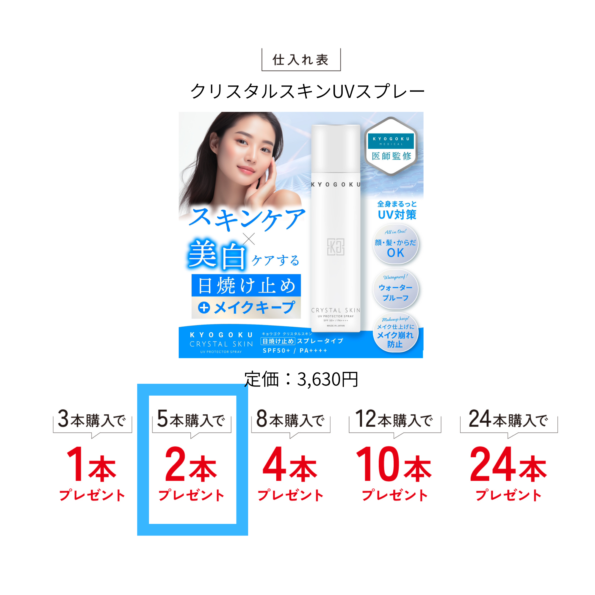クリスタルスキンUVスプレー 5本購入で2本プレゼント
