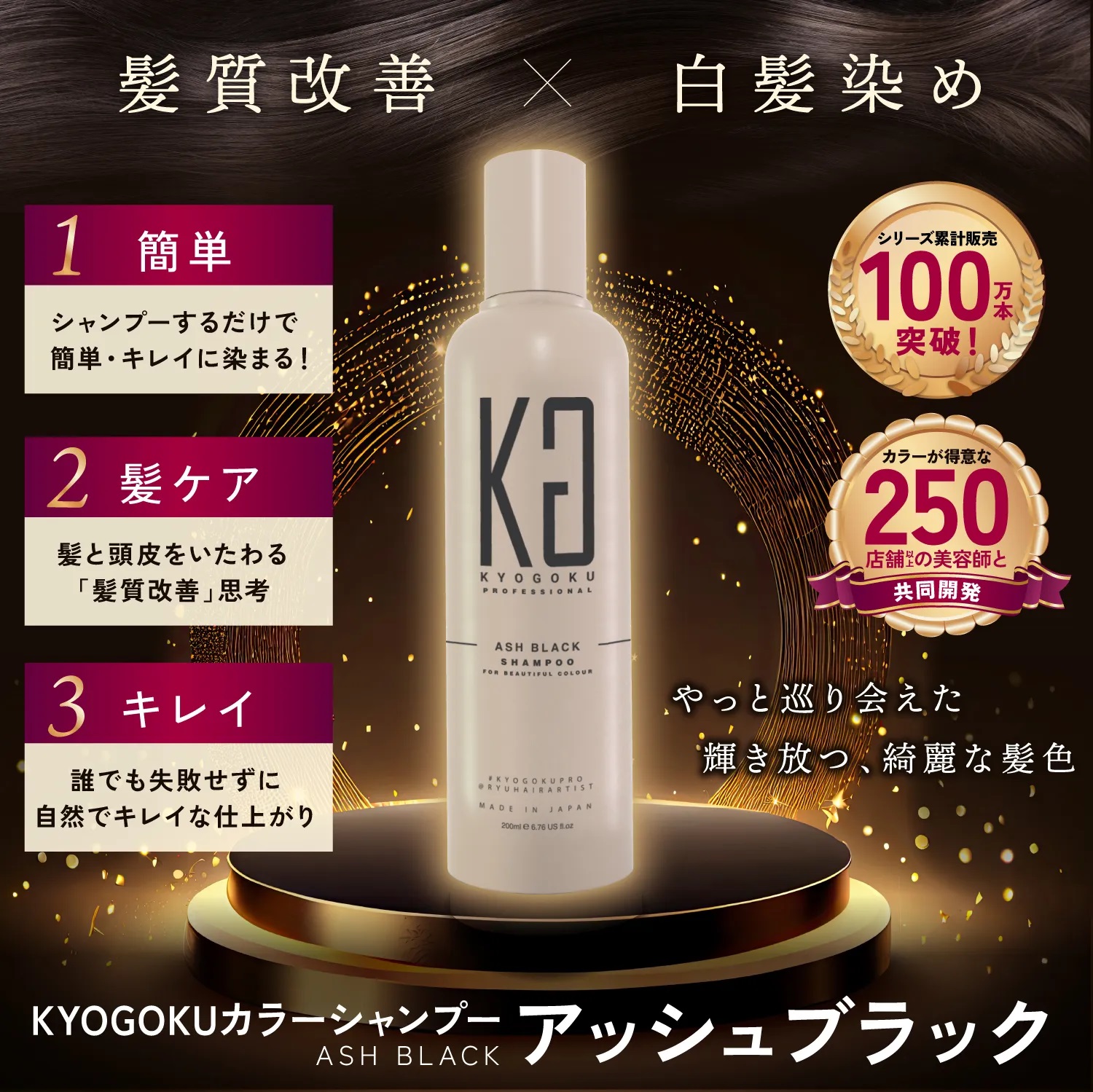 KYOGOKU カラーシャンプー アッシュブラック 200ml カラー シャンプー 白髪 サロンシャンプー アッシュ ブラック ブリーチ髪 ダメージケア サロン専売品