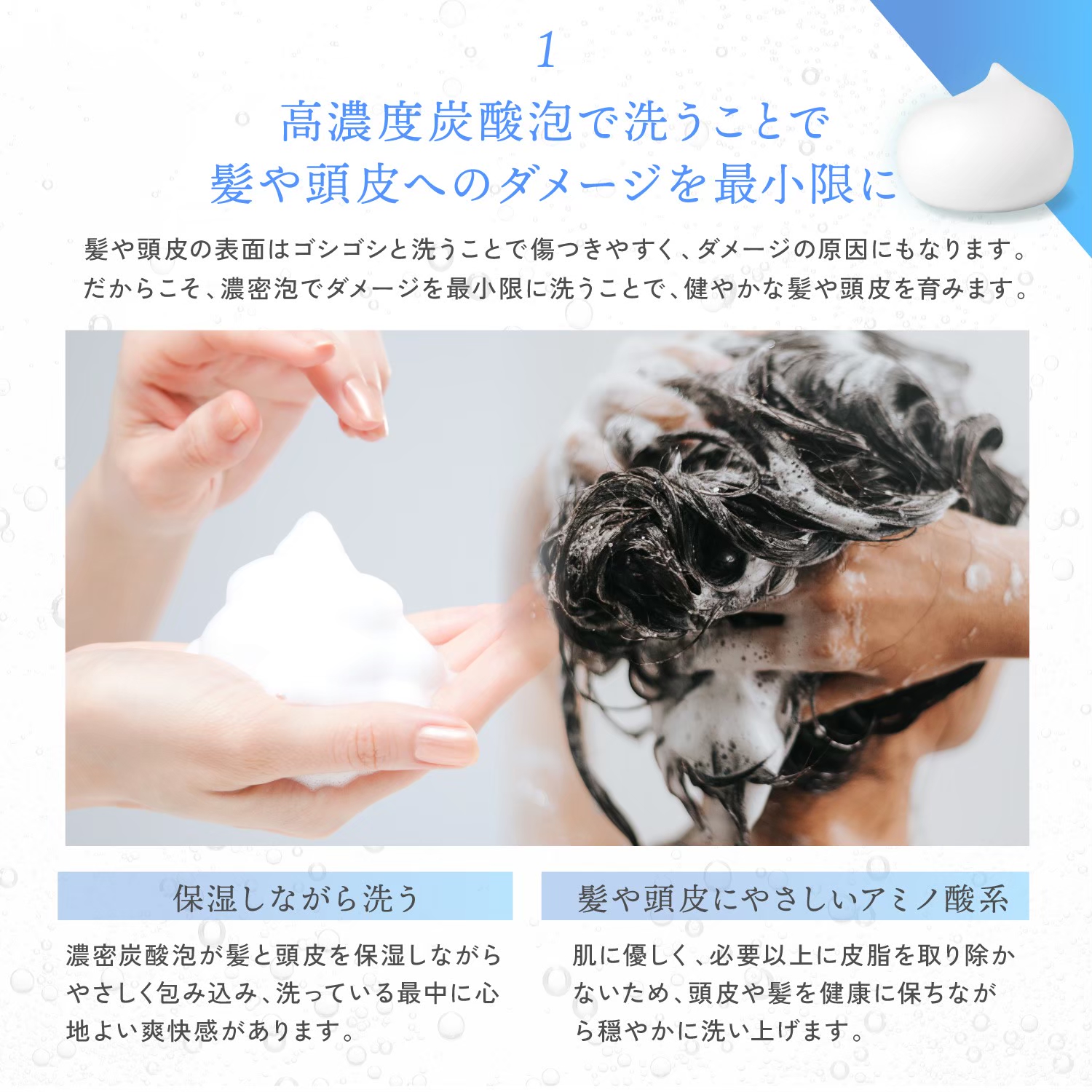 - 濃密な炭酸泡が頭皮の皮脂・汚れを浮かせてすっきりと洗い上げます。
