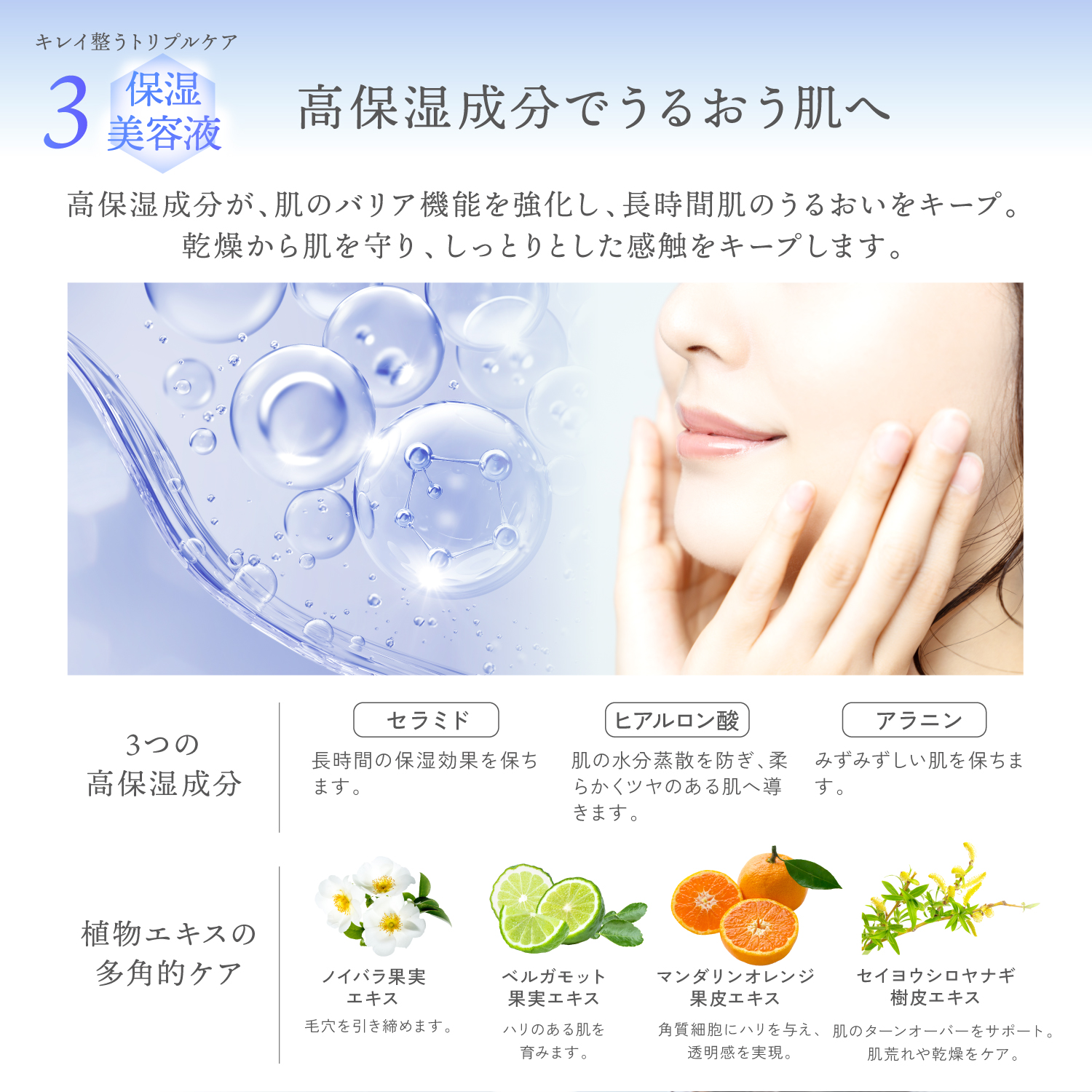 - ・セラミド・ヒアルロン酸・植物エキスがバリア機能を高め、乾燥や外的刺激から保護