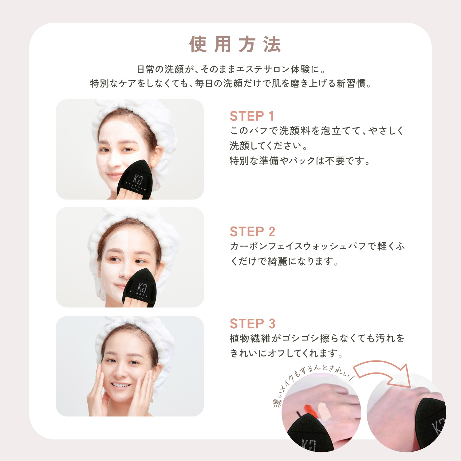 - カーボン素材を使うことで、摩擦を抑えながら汚れを吸着できるよう設計しました。肌への優しさと清潔感を両立したパフです。