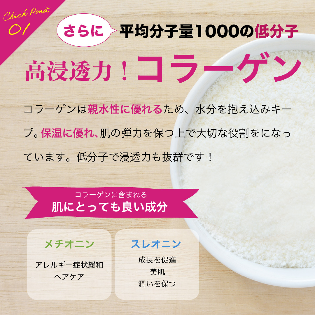 水、加水分解コラーゲン、ペンチレングリコール、白金、ヒト幹細胞順化培養液、アスコビルメチルカルニボニルペンタペプチド-72-トリ-t-ブチルトリプトファナミド、BG、トリ(カプリル酸/カプリン酸)グリセル、水添レシチン、1,2-ヘキサンジオール、ポリソルベート80、クエン酸、エチルヘキシルグリセリン、トコフェロール