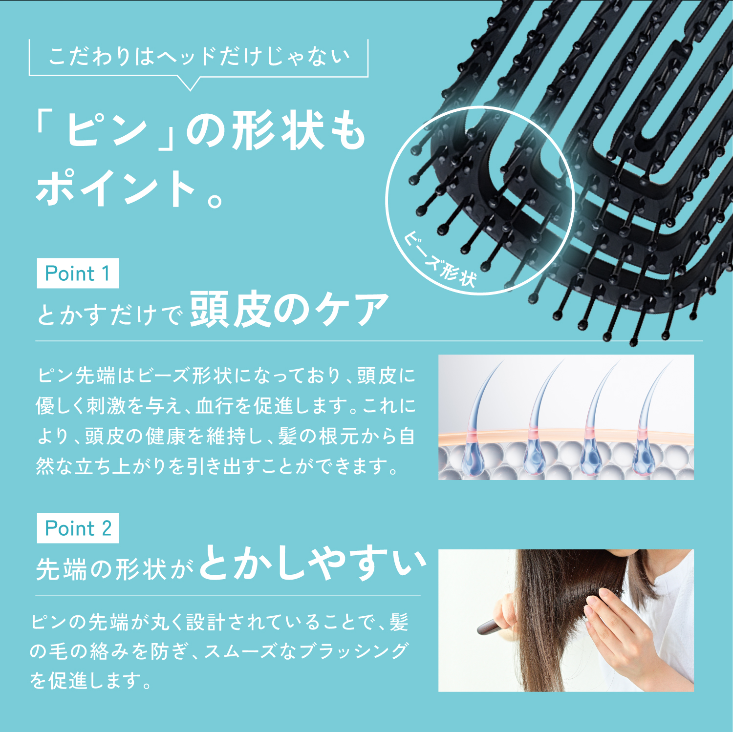 ・ピン硬さが絶妙で、髪の毛へのストレスや摩擦を最小限に抑えられるよう開発