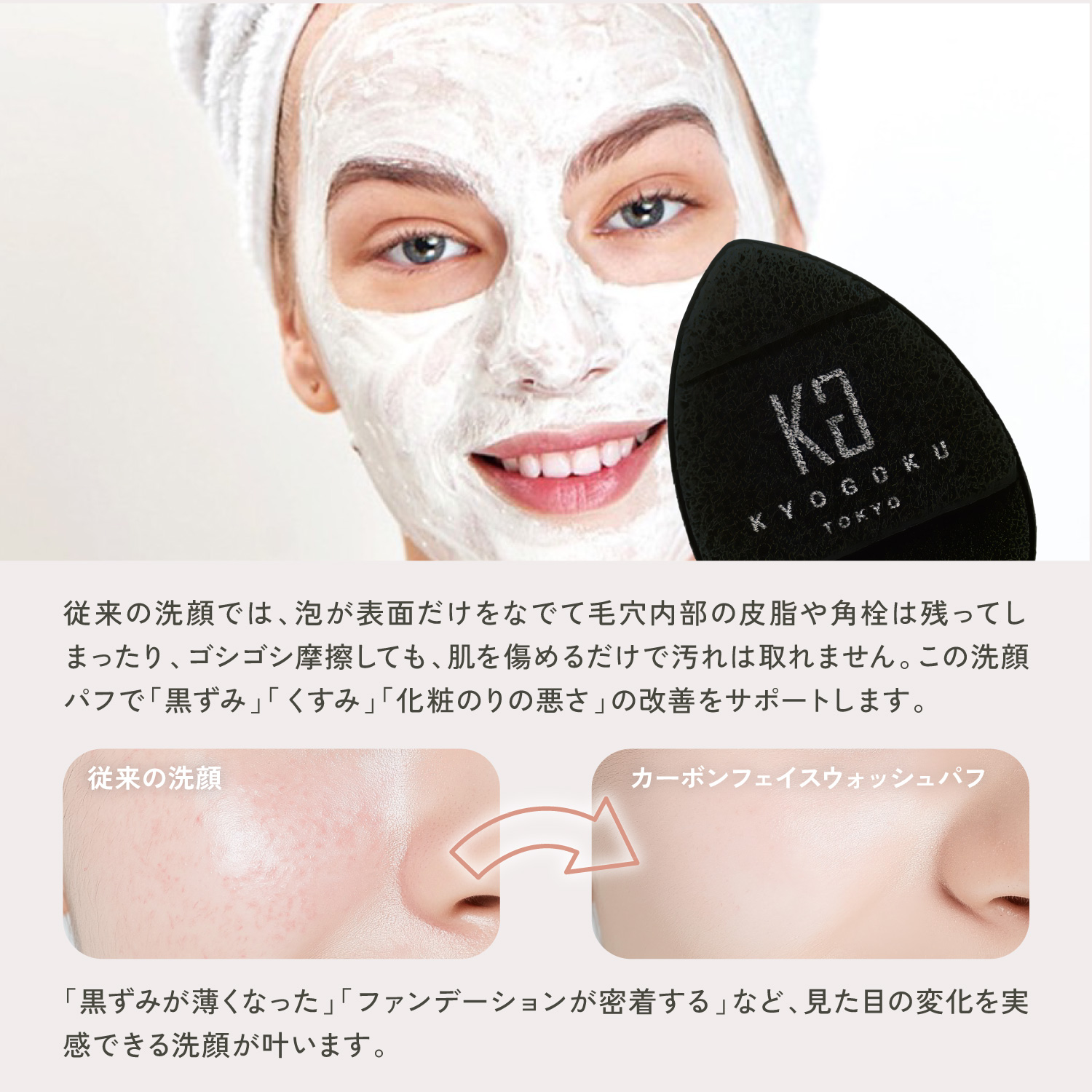 KYOGOKU カーボン フェイスウォッシュ パフ 洗顔