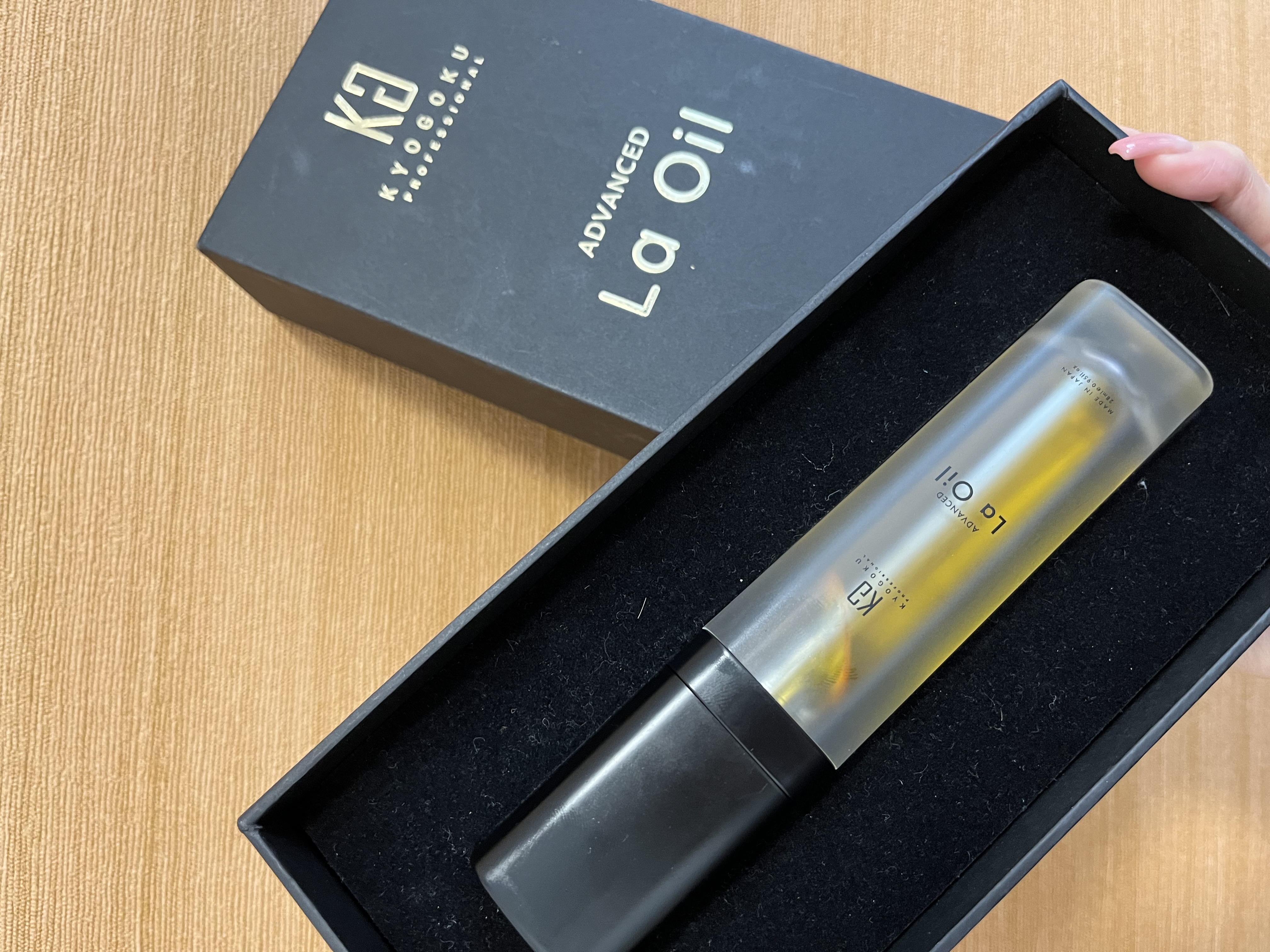 - KYOGOKU La Oilは、天然由来成分を贅沢にブレンドした、ケアとスタイリングの両立を実現する次世代ヘアオイル。